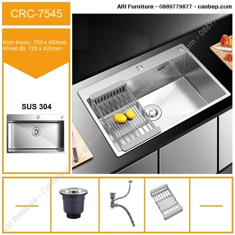 Chậu Rửa Chén 75x45cm 1 Hộc Dày 2.2mm - inox 304