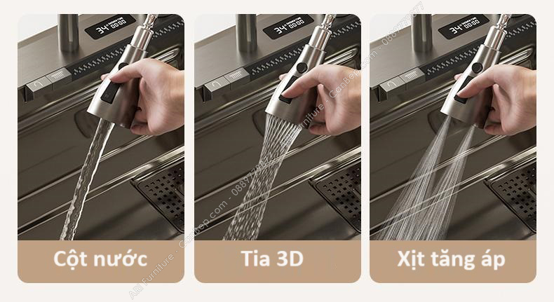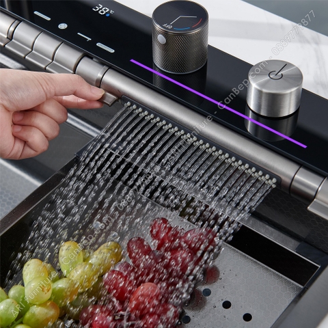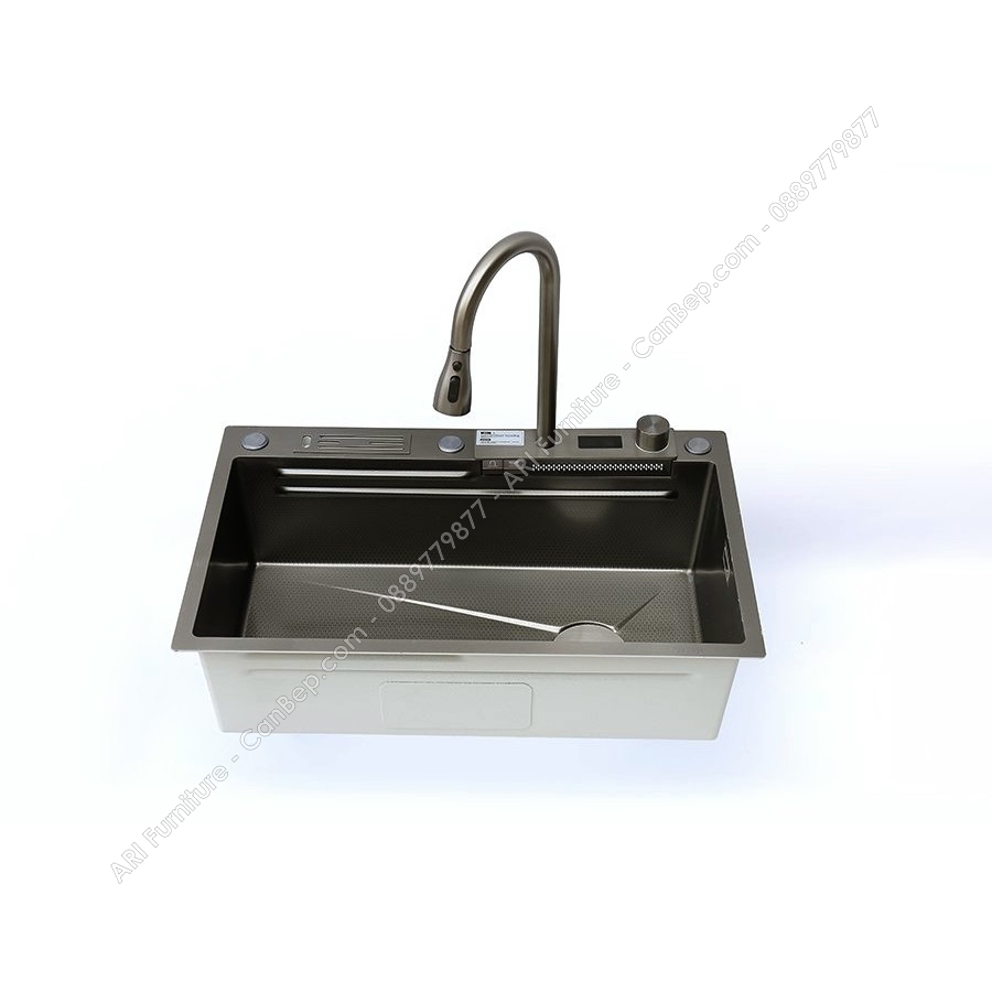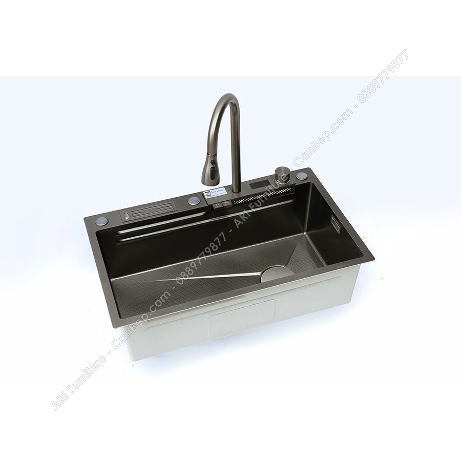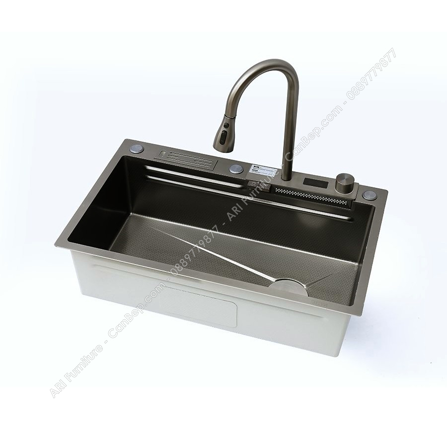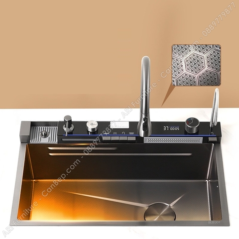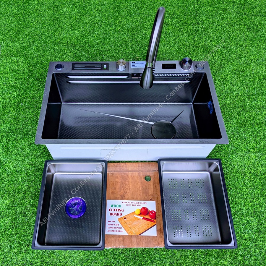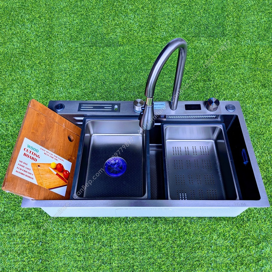 Chậu Rửa Chén 78x46cm Vòi Nhiệt Độ + Vắt Dao Dày 3.0mm - inox 304 Nano Đen